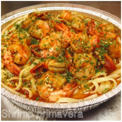 Pasta topped with a sauté of shrimp, white wine, fresh garlic, seasonings, and a touch of homemade marinara sauce